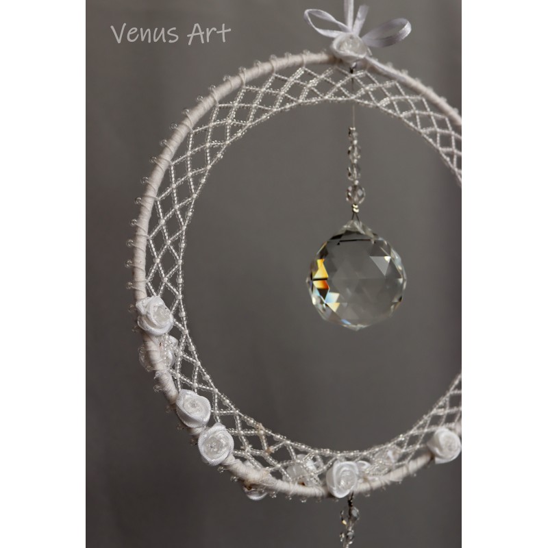 Dekorace do interiéru bohatě zdobená skleněnými korálky, textilními kvítky.