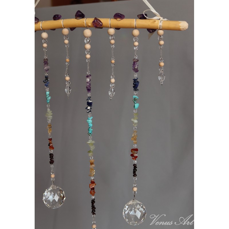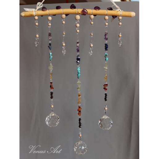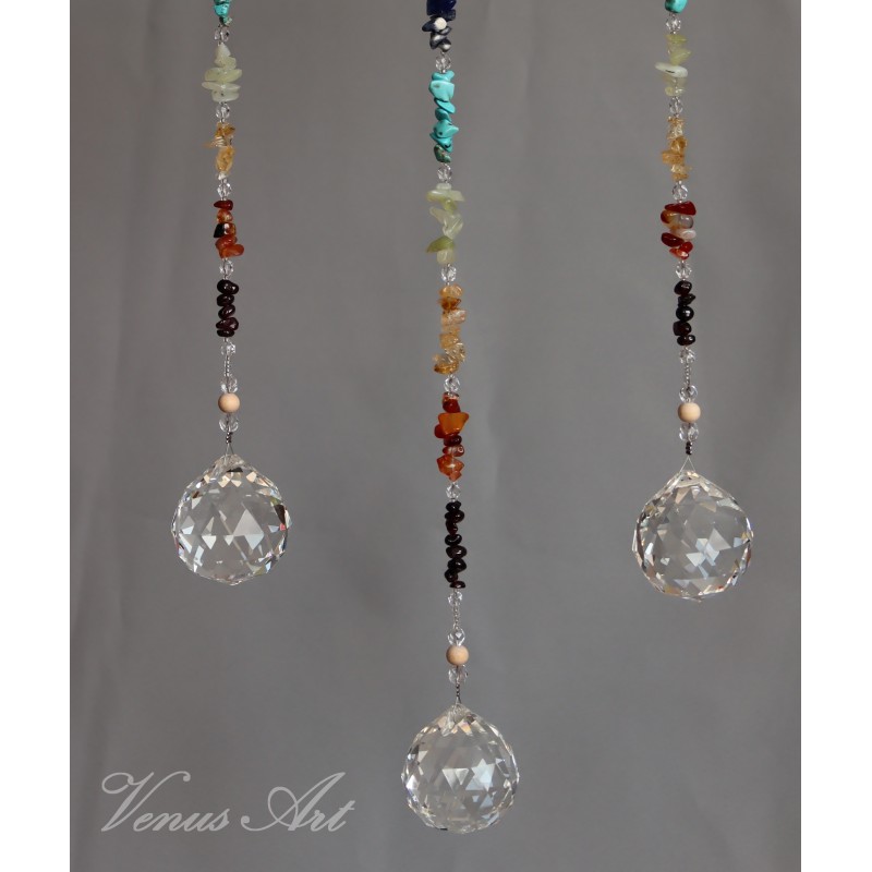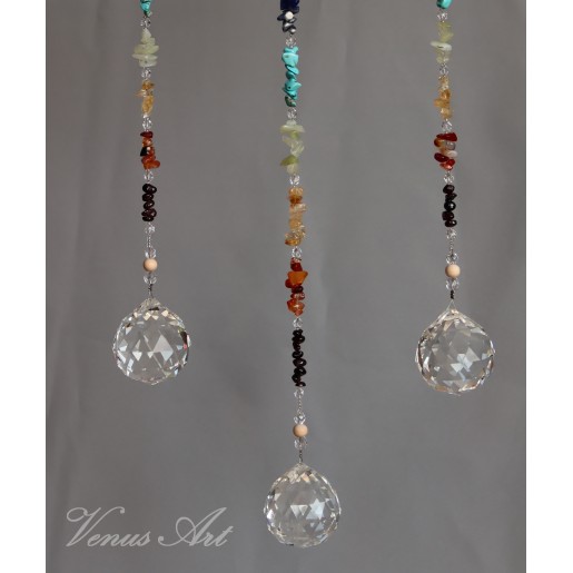 Na ručně opracované větvi jsou zavěšeny tři feng shui koule /průměr 4cm/ z křišťálového skla.