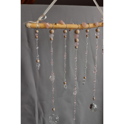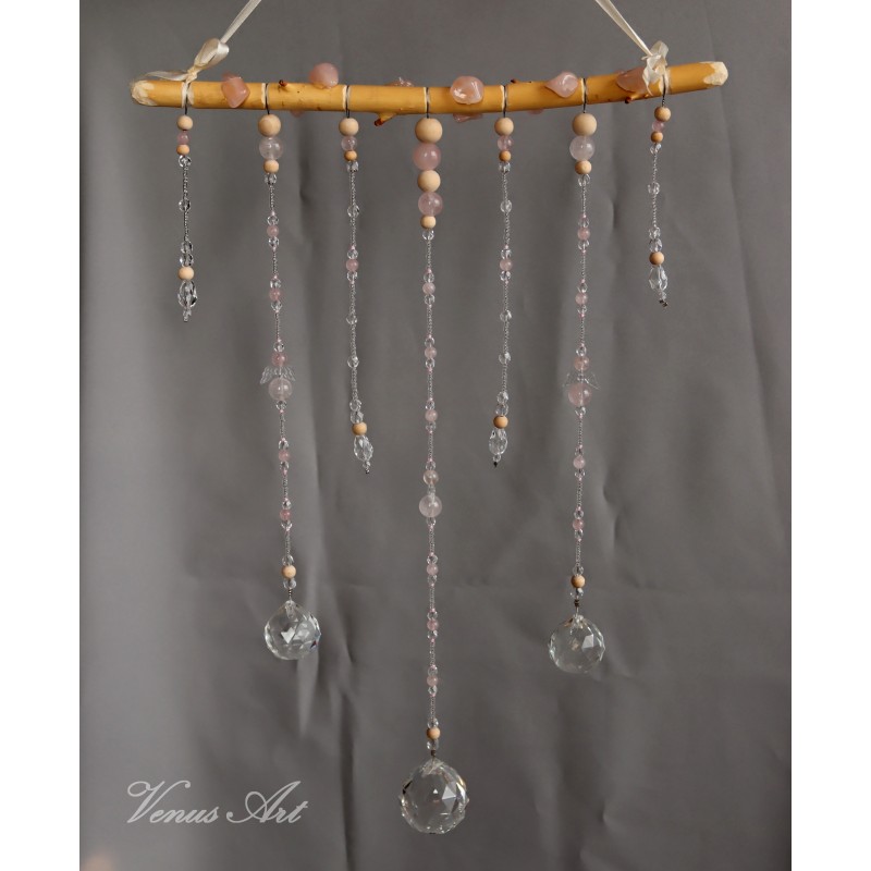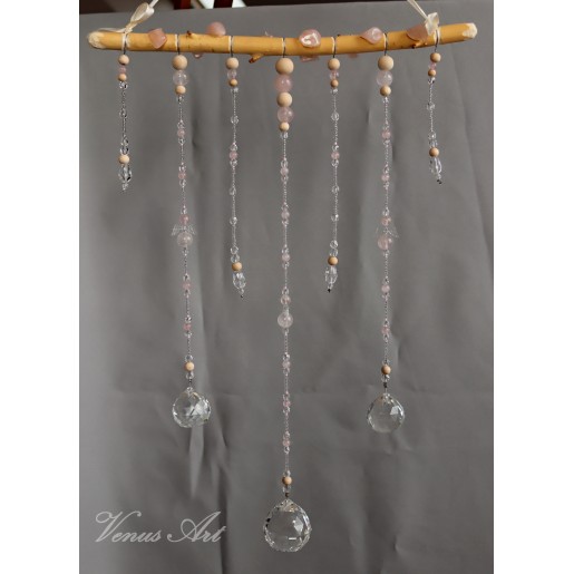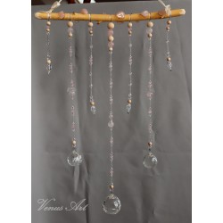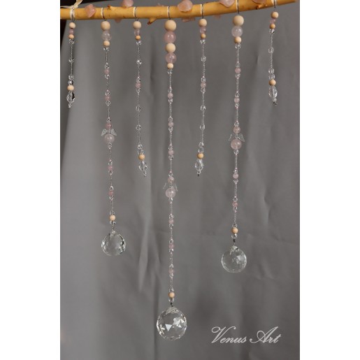 Na ručně opracované větvi jsou zavěšeny tři feng shui koule /průměr 3cm,4cm/ z křišťálového skla.