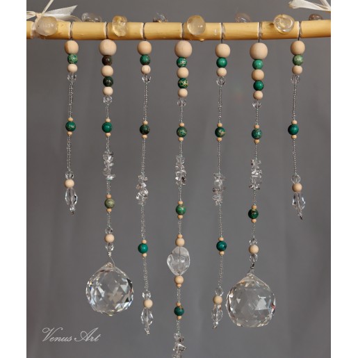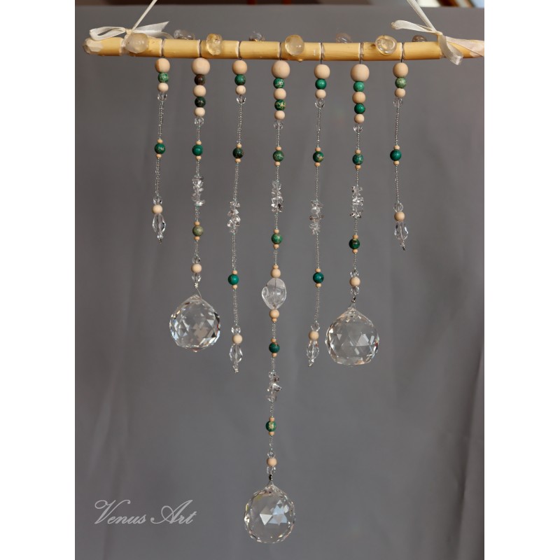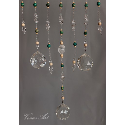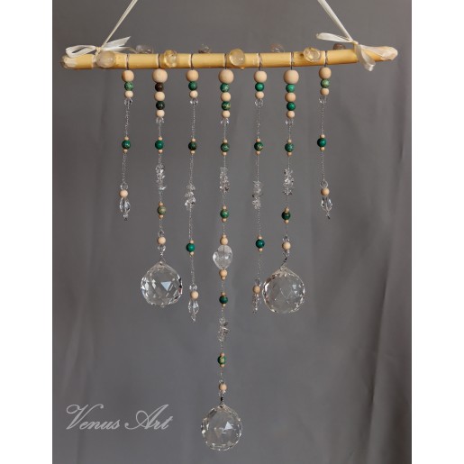Na ručně opracované větvi jsou zavěšeny tři feng shui koule /průměr 4cm/ z křišťálového skla.