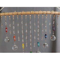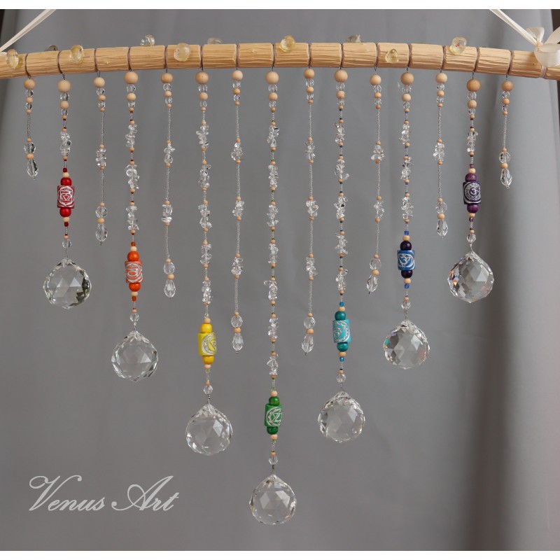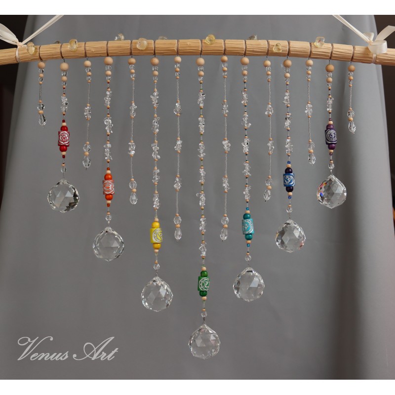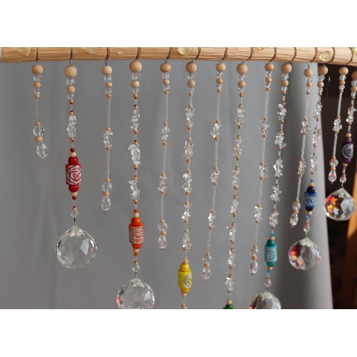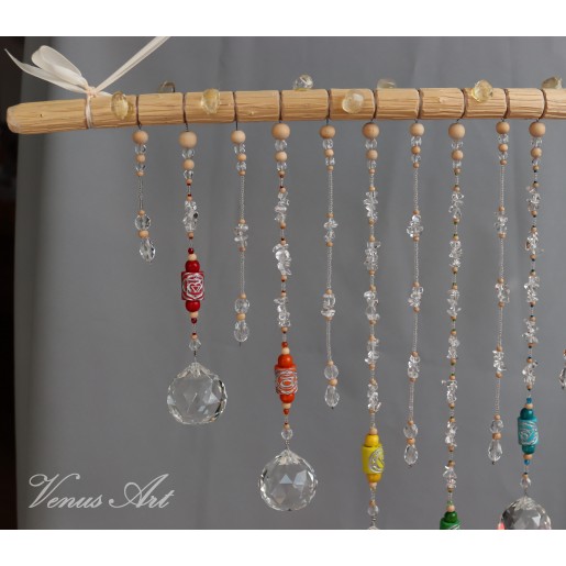 Dekorace do interiéru zdobená korálky ze skla, dřeva, zlomky pravého KŘIŠŤÁLU ! AA kvality !, vysokého lesku. Velké, krásné, čisté kousky křišťálu.